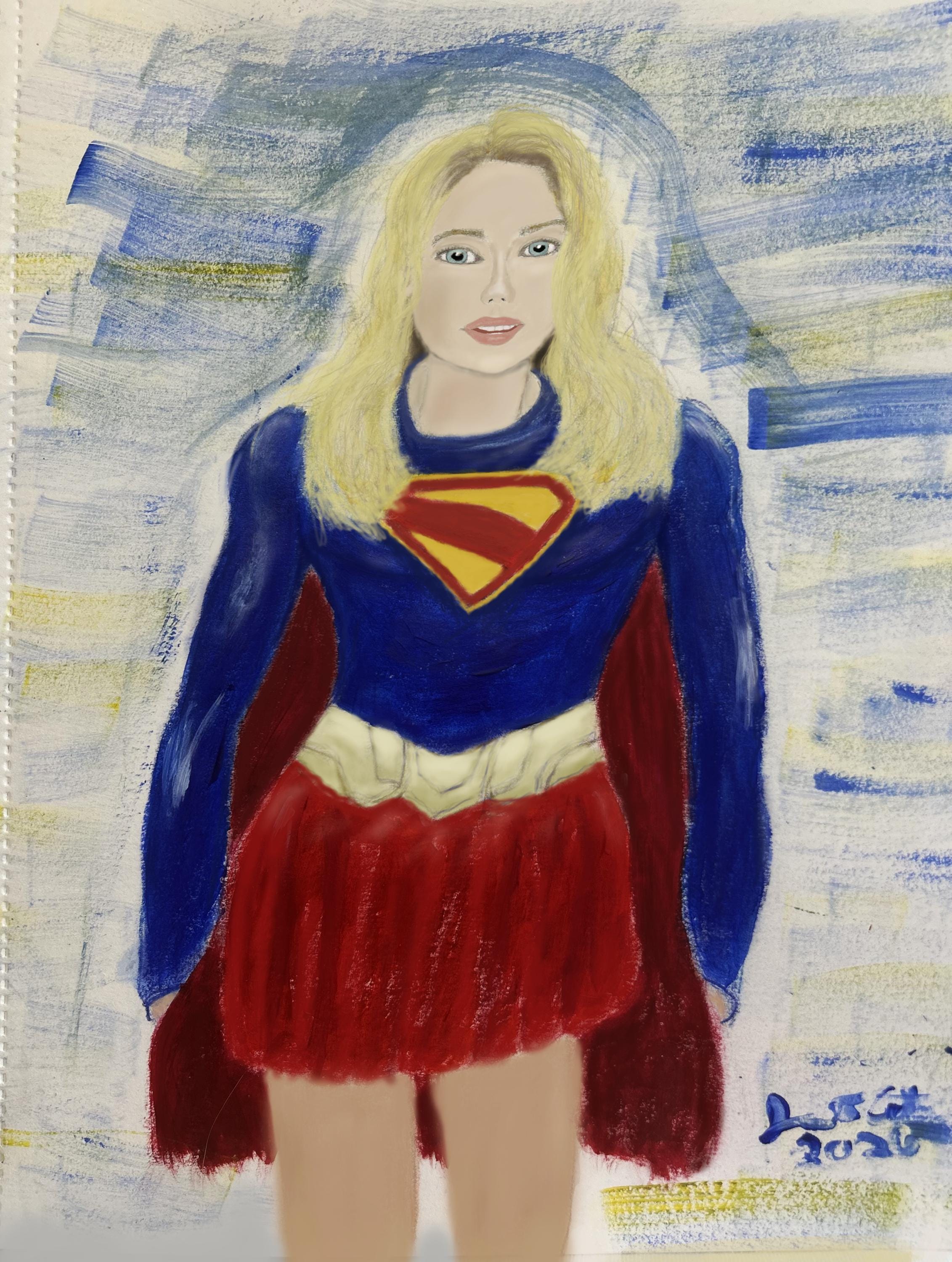 Super cool, colorful 11x14 print of an acrylic painting of Milly Babcock's Supergirl from the 2026 DCU film.